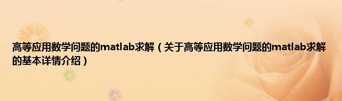 本文关于高等应用数学问题的matlab求解的基本详情介绍就讲解完毕,希望对大家有所帮助。