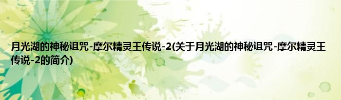 大家好,月光湖的神秘诅咒-摩尔精灵王传说-2,关于月光湖的神秘诅咒-摩尔精灵王传说-2的简介很多人还不知道,现在让我们一起来看看吧!