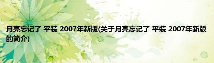 大家好,月亮忘记了 平装 2007年新版,关于月亮忘记了 平装 2007年新版的简介很多人还不知道,现在让我们一起来看看吧!