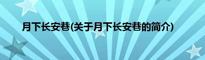 大家好,月下长安巷,关于月下长安巷的简介很多人还不知道,现在让我们一起来看看吧!