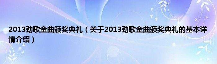 本文关于2013劲歌金曲颁奖典礼的基本详情介绍就讲解完毕,希望对大家有所帮助。