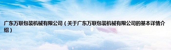 本文关于广东万联包装机械有限公司的基本详情介绍就讲解完毕,希望对大家有所帮助。