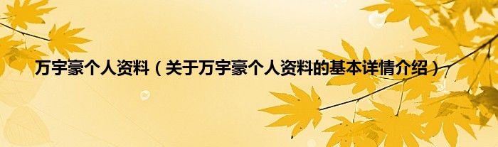 本文关于万宇豪个人资料的基本详情介绍就讲解完毕,希望对大家有所帮助。