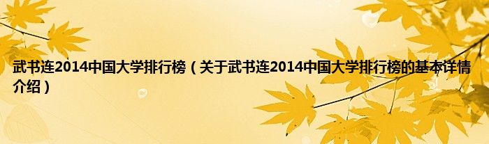 本文关于武书连2014中国大学排行榜的基本详情介绍就讲解完毕,希望对大家有所帮助。
