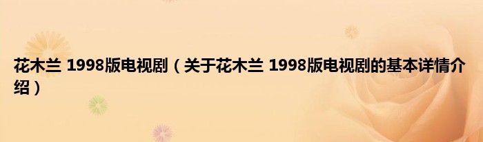 本文关于花木兰 1998版电视剧的基本详情介绍就讲解完毕,希望对大家有所帮助。