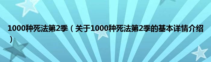 本文关于1000种死法第2季的基本详情介绍就讲解完毕,希望对大家有所帮助。