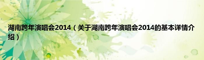 本文关于湖南跨年演唱会2014的基本详情介绍就讲解完毕,希望对大家有所帮助。