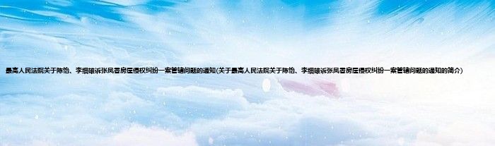 本文关于最高人民法院关于陈怡、李细雄诉张凤香房屋侵权纠纷一案管辖问题的通知的简介就讲解完毕,希望对大家有所帮助。