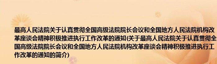 本文关于最高人民法院关于认真贯彻全国高级法院院长会议和全国地方人民法院机构改革座谈会精神积极推进执行工作改革的通知的简介就讲解完毕,希望对大家有所帮助。