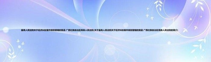 大家好,最高人民法院关于经济纠纷案件级别管辖的复函 广西壮族自治区高级人民法院,关于最高人民法院关于经济纠纷案件级别管辖的复函 广西壮族自治区高级人民法院的简介很多人还不知道,现在让我们一起来看看吧!