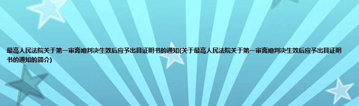 本文关于最高人民法院关于第一审离婚判决生效后应予出具证明书的通知的简介就讲解完毕,希望对大家有所帮助。