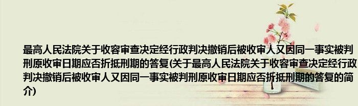 本文关于最高人民法院关于收容审查决定经行政判决撤销后被收审人又因同一事实被判刑原收审日期应否折抵刑期的答复的简介就讲解完毕,希望对大家有所帮助。