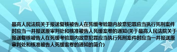 本文关于最高人民法院关于报送复核被告人在死缓考验期内故意犯罪应当执行死刑案件时应当一并报送原审判处和核准被告人死缓案卷的通知的简介就讲解完毕,希望对大家有所帮助。