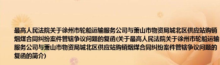本文关于最高人民法院关于徐州市轮船运输服务公司与萧山市物资局城北区供应站购销烟煤合同纠纷案件管辖争议问题的复函的简介就讲解完毕,希望对大家有所帮助。