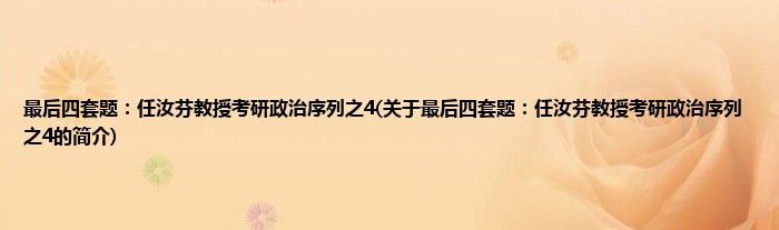 大家好,最后四套题:任汝芬教授考研政治序列之4,关于最后四套题:任汝芬教授考研政治序列之4的简介很多人还不知道,现在让我们一起来看看吧!