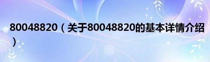 大家好我是小蝌蚪,80048820,关于80048820的基本详情介绍很多人还不知道,那么现在让我们一起来看看吧!