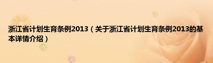 本文关于浙江省计划生育条例2013的基本详情介绍就讲解完毕,希望对大家有所帮助。