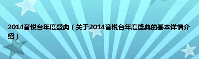 本文关于2014音悦台年度盛典的基本详情介绍就讲解完毕,希望对大家有所帮助。