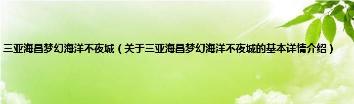本文关于三亚海昌梦幻海洋不夜城的基本详情介绍就讲解完毕,希望对大家有所帮助。