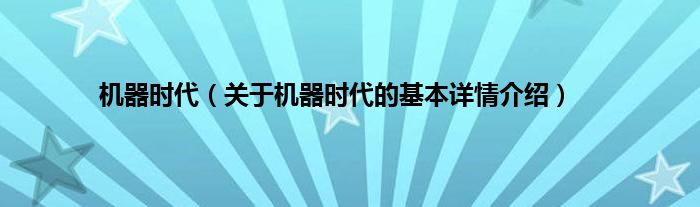 本文关于机器时代的基本详情介绍就讲解完毕,希望对大家有所帮助。