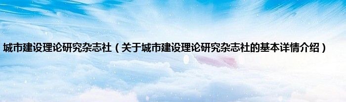 本文关于城市建设理论研究杂志社的基本详情介绍就讲解完毕,希望对大家有所帮助。