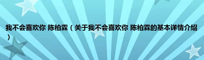 本文关于我不会喜欢你 陈柏霖的基本详情介绍就讲解完毕,希望对大家有所帮助。