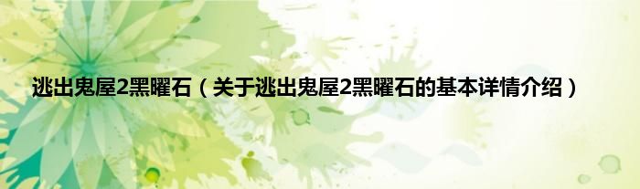 本文关于逃出鬼屋2黑曜石的基本详情介绍就讲解完毕,希望对大家有所帮助。