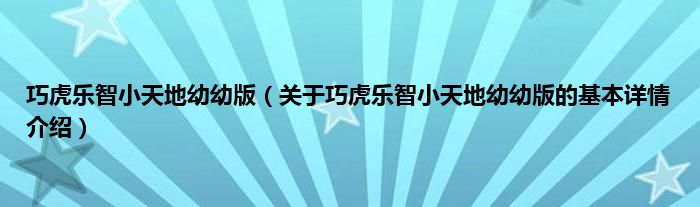 本文关于巧虎乐智小天地幼幼版的基本详情介绍就讲解完毕,希望对大家有所帮助。