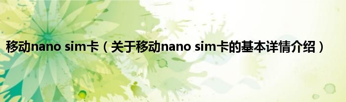 本文关于移动nano sim卡的基本详情介绍就讲解完毕,希望对大家有所帮助。