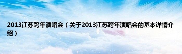 本文关于2013江苏跨年演唱会的基本详情介绍就讲解完毕,希望对大家有所帮助。