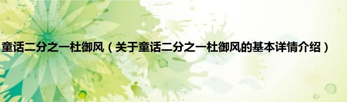 本文关于童话二分之一杜御风的基本详情介绍就讲解完毕,希望对大家有所帮助。