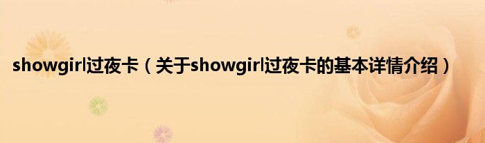 本文关于showgirl过夜卡的基本详情介绍就讲解完毕,希望对大家有所帮助。