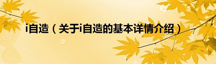 i自造(关于i自造的基本详情介绍)