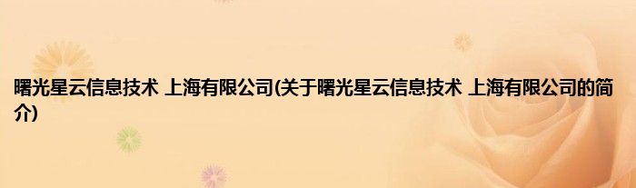 本文关于曙光星云信息技术 上海有限公司的简介就讲解完毕,希望对大家有所帮助。