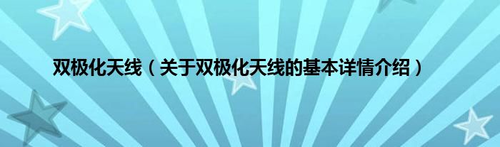 本文关于双极化天线的基本详情介绍就讲解完毕,希望对大家有所帮助。