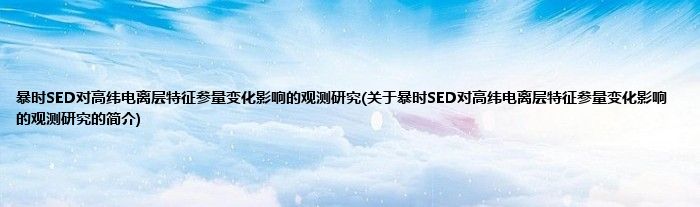 本文关于暴时SED对高纬电离层特征参量变化影响的观测研究的简介就讲解完毕,希望对大家有所帮助。