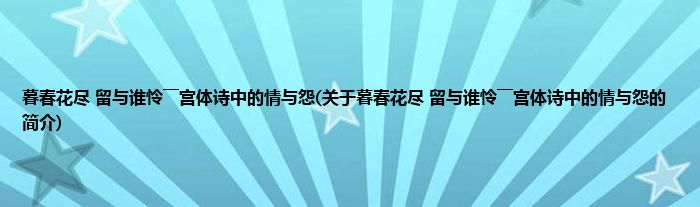 本文关于暮春花尽,留与谁怜――宫体诗中的情与怨的简介就讲解完毕,希望对大家有所帮助。