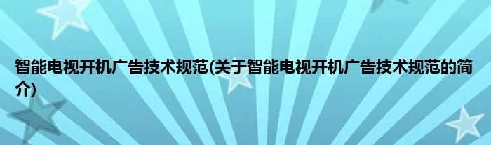 大家好,智能电视开机广告技术规范,关于智能电视开机广告技术规范的简介很多人还不知道,现在让我们一起来看看吧!