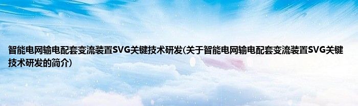 大家好,智能电网输电配套变流装置SVG关键技术研发,关于智能电网输电配套变流装置SVG关键技术研发的简介很多人还不知道,现在让我们一起来看看吧!