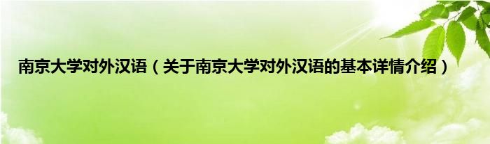 本文关于南京大学对外汉语的基本详情介绍就讲解完毕,希望对大家有所帮助。