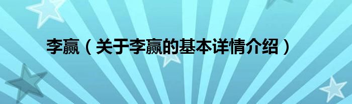本文关于李赢的基本详情介绍就讲解完毕,希望对大家有所帮助。