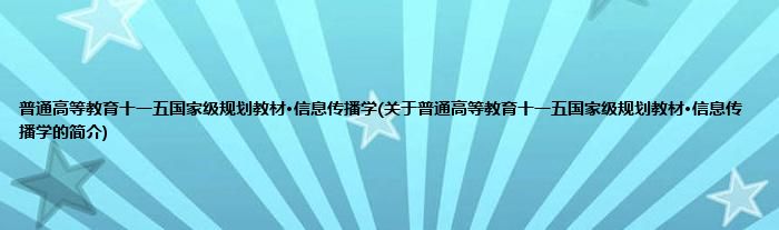 大家好,普通高等教育十一五国家级规划教材·信息传播学,关于普通高等教育十一五国家级规划教材·信息传播学的简介很多人还不知道,现在让我们一起来看看吧!
