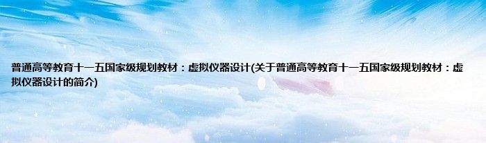 本文关于普通高等教育十一五国家级规划教材:虚拟仪器设计的简介就讲解完毕,希望对大家有所帮助。