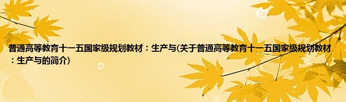 大家好,普通高等教育十一五国家级规划教材:生产与,关于普通高等教育十一五国家级规划教材:生产与的简介很多人还不知道,现在让我们一起来看看吧!