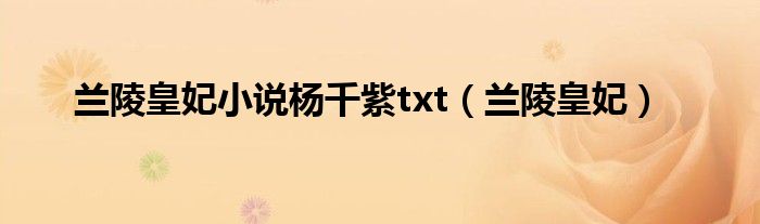 大家好,小问来为大家解答以上问题。兰陵皇妃小说杨千紫txt,兰陵皇妃这个很多人还不知道,现在让我们一起来看看吧!