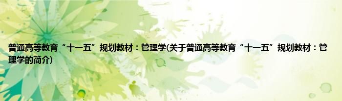 1、 《普通高等教育“十一五”规划教材:管理学》是中国电力出版社出版的书籍。