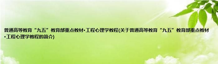 本文关于普通高等教育“九五”教育部重点教材·工程心理学教程的简介就讲解完毕,希望对大家有所帮助。