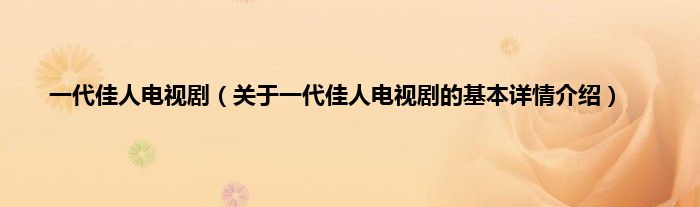本文关于一代佳人电视剧的基本详情介绍就讲解完毕,希望对大家有所帮助。