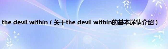 本文关于the devil within的基本详情介绍就讲解完毕,希望对大家有所帮助。