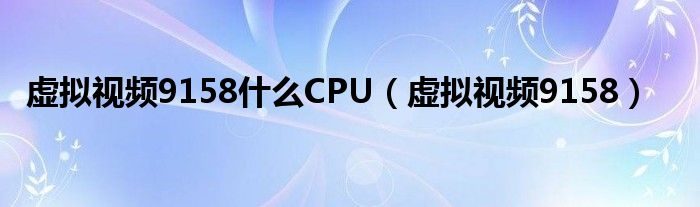 以上就是【虚拟视频9158什么CPU,虚拟视频9158】相关内容。
